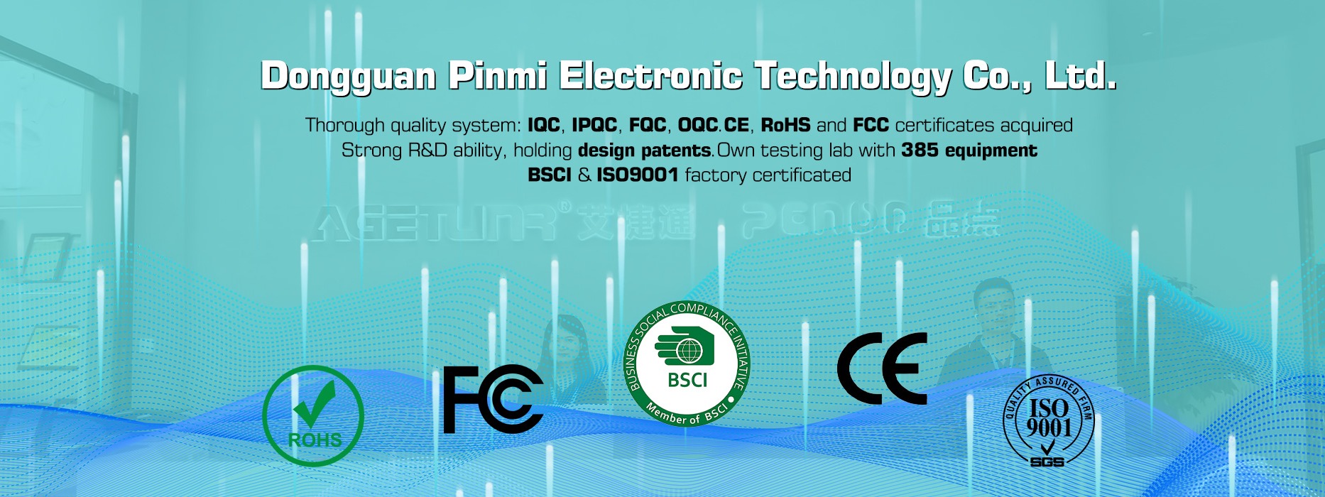 Dongguan Pinmi Electronic Technology Co., Ltd have been concentrating on mobile accessories like Bluetooth earphones, Bluetooth receivers, Bluetooth car FM transmitters for 12 years. Factory covers an area of 15,000 square meters, with over 350 staff, annual production capacity exceeds 10,000,000 pieces.